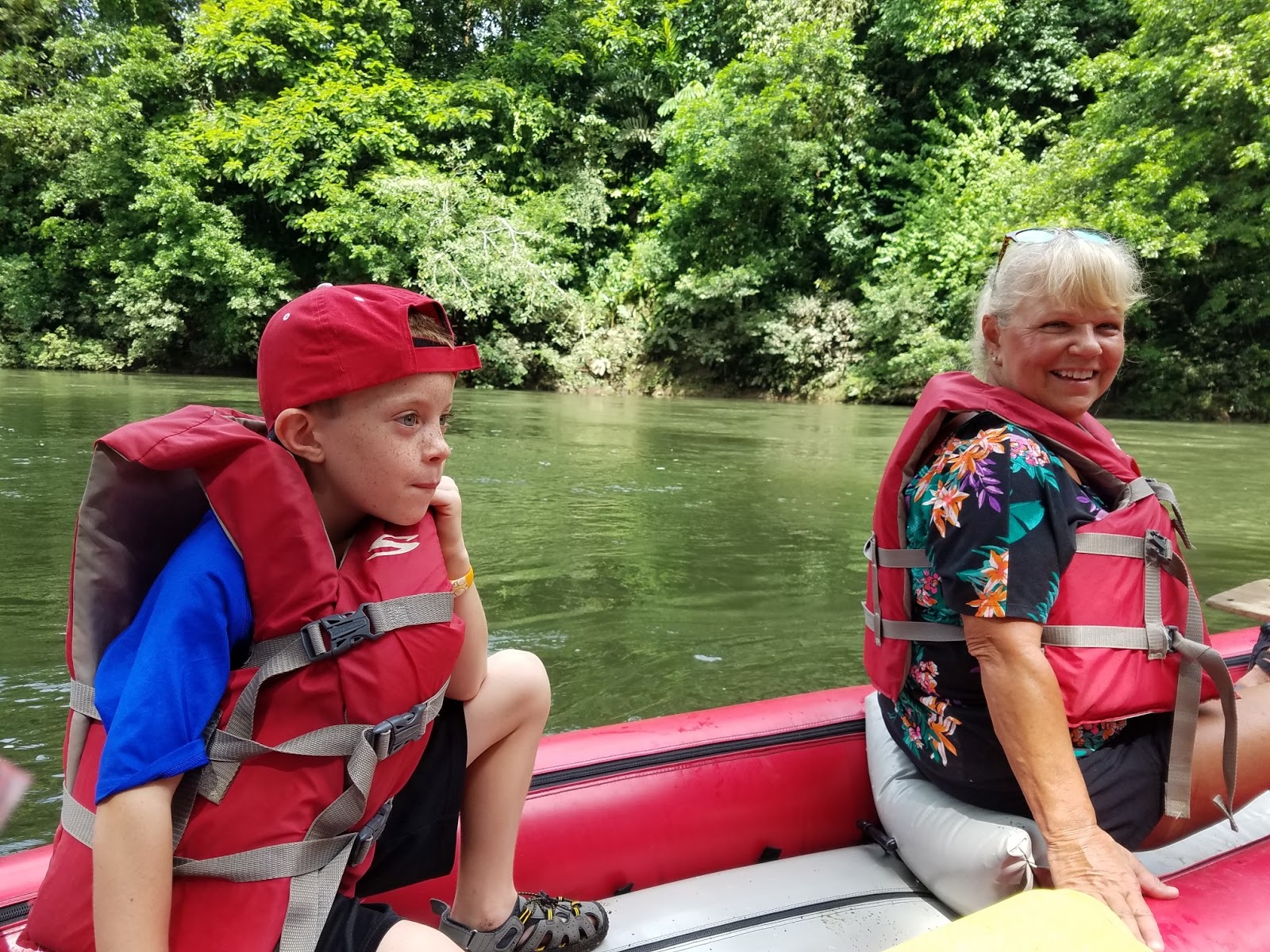 Fabian was back again that morning to take my Mom, Finley, Baylor, Atticus and I on a float trip. The rest of the crew went zip lining. Our trip was slow, and Finley complained of being hot, tired, long, etc. She didn't enjoy herself, but we did see a lot of wild life. We saw a sloth, a crocodile, cayman, monkeys, and iguanas along the way.